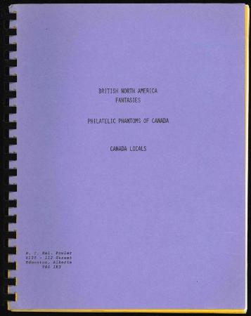 Fowler, W.T. Mel. British North America Fantasies, Philatelic Phantoms of Canada, Canada Locals | Description |  | British North America Fantasies, Philatelic Phantoms of Canada, Canada Locals by W.T. Mel. Fowler An early listing and catalog with illustrations of Canada Cinderella stamps. Comb bound. 107 pages. Used, F-VF |  | Bidding |  |