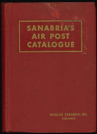 Sanabria's Air Post Catalogue by Nicholas Sanabria. Illustrated and priced catalogue. Lists many items not found in standard catalogs. 1943. Cloth covers. xviii, 930 pages. F light page toning and cover stain, binding a bit loose