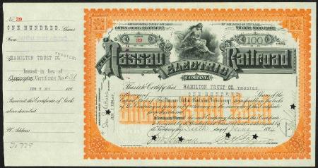 Nassau Electric Railroad Company stock certificate. New York. 1894.