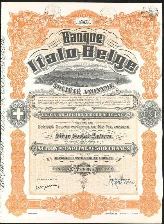 BELGIUM Banco Itgalo-Belge stock certificate. Anvers. 1944. Belgium imprinted revenue stamps.