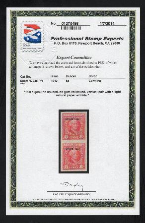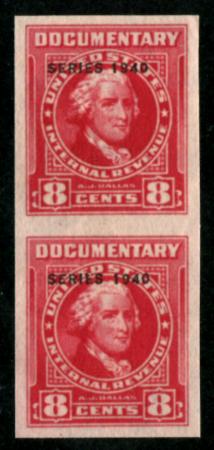 R293a vertical pair, imperforate, without gum, mint, VF. PSE Certificate | Description |  | Scott R293a 1940 8c carmine (Alexander Dallas) vertical pair, imperforate, without gum, mint, VF. PSE Certificate |  |  | | Bidding |  |