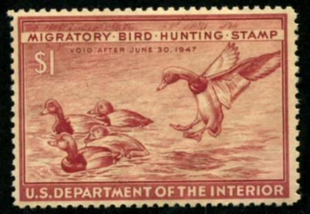 1946 $1 red brown, Redhead Ducks