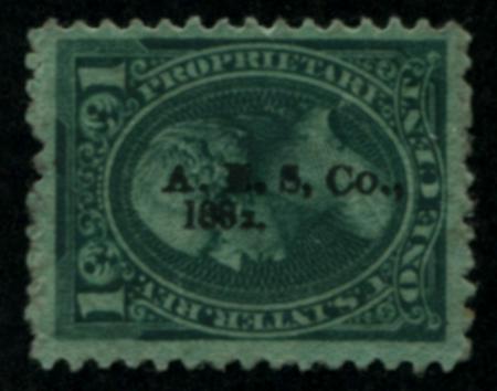 American Eye Salve Co. RB11b A.E.S. Co. 1882. black printed cancel reading down, F-VF