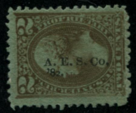 American Eye Salve Co. RB12b A.E.S. Co. '82. black printed cancel reading down, F-VF short perf