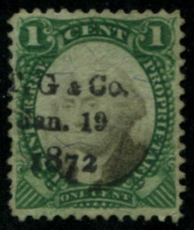 Tufts, Grosvenor & Co. RB1a T.G. & Co. Jan. 19 1872 . black printed cancel, F-VF