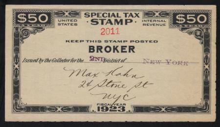 Broker F.Y.E. 1923 $50 black, VF