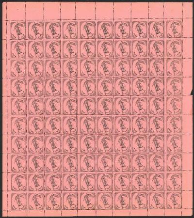 20L56 perf. 12, sheet of 100, mint, F-VF few minor perf separations | Description |  | Boyd's Dispatch. New York, N.Y. Scott 20L56 1882 black, pink perf. 12, sheet of 100, mint, F-VF few minor perf separations