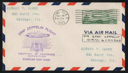 Graf Zeppelin Flight to Century of Progress Exposition cover, Miami to Chicago. 1933. VF