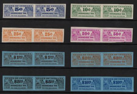 IN D50a-D57a imperforate, bottom sheet margin, mint, VF | Description |  | SRS IN D50a-D57a 1939 5c-$10 imperforate horizontal pairs, complete set of eight values, mint, F-VF all are creased, the 50c with a small margin nick |  | | Bidding |  |