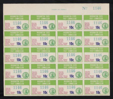 WA FR10 sheet of 20, mint, VF