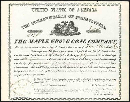 Maple Grove Coal Company $500 7% Bond. Mercer & Venango Counties, Pennsylvania. 1875