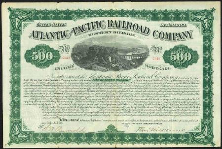 Atlantic and Pacific Railroad Company $500 income mortgage bond. 1880
