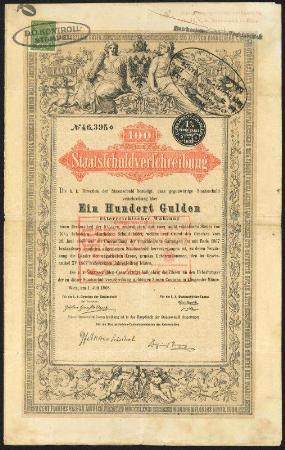 AUSTRIA Staatsschuldverschreibung 100 Gulden 5% bond. Vienna. 1868