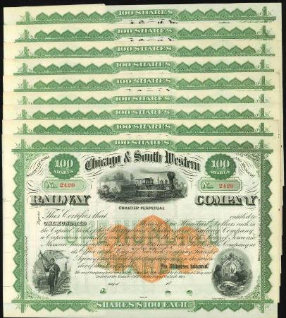 RN-U1 Illinois. Chicago & South Western Railway Co. stock certificate for 100 shares, lot of 10
