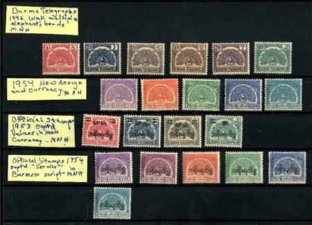 BURMA Telegraph stamps, 21 different, mint, F-VF