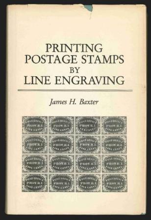 Printing Postage Stamps by Line Engraving by James H. Baxter. A study on the technique of printing stamps from engraved plates. Illustrated. 1981. Quarterman reprint. Cloth covers, dust jacket. 164 pages. Used, VF dust jacket somewhat tattered