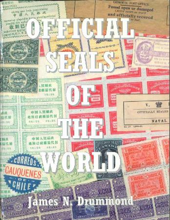 Drummond, James N. Official Seals of the World. | Description |  | Official Seals of the World by James N. Drummond. A superbly illustrated and priced catalogue of post office seals & tapes, registered, insured & certified seals, customs & currency control seals, dead letter office labels, telegraph seals and much more from over 150 countries. Color illustrations. 2007. Card covers. xxxviii, 610 pages. Used, F-VF shows light wear from use |  | | Bidding |  |