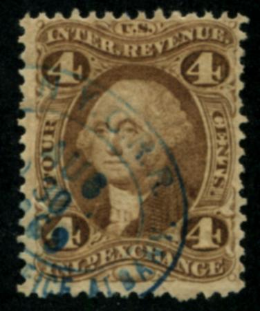 R20c double transfer at top in U.S., blue handstamp, F-VF