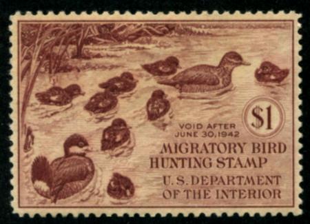 1941 $1 brown carmine, Family of Ruddy Ducks