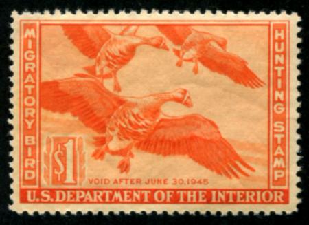 1944 $1 red orange, White-fronted Geese