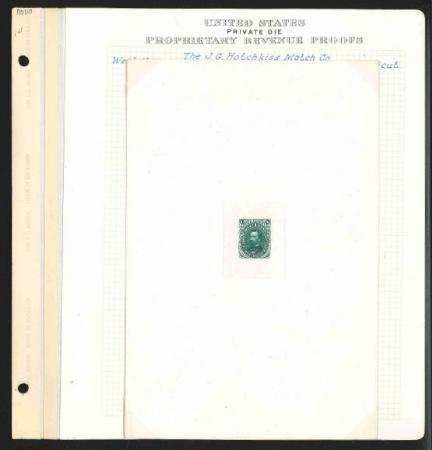1862-83 1c green BEP die proof, india die sunk on 151x226mm card, VF. Mounted on Joyce album page