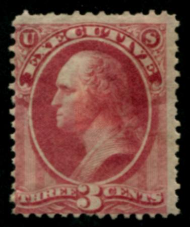 O12 mint, part o.g., HR's, F few short perfs | Description |  | Scott O12 1873 3c Executive Department, carmine (George Washington) mint, part o.g., HR's, F few short perfs |  | | Bidding |  |