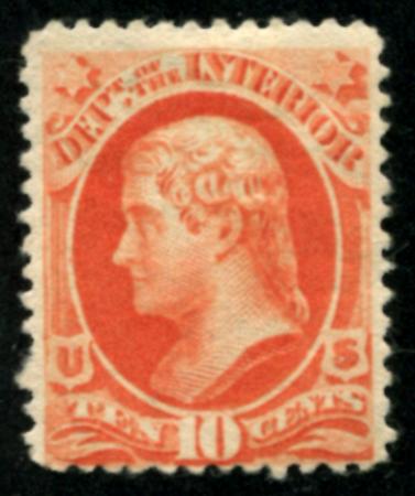 1879 10c Interior Department, vermilion (Thomas Jefferson)