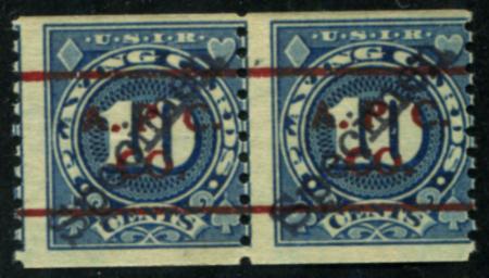 RF20S black Specimen handstamp, A.P.C. CO. precancel (PC2), coil pair, VG-F