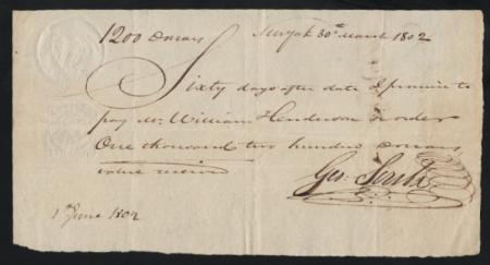 RM264b Promissory note. New York, N.Y. 1802. Sharp strikes, file fold affects counter stamp, VF | | Bidding |  |