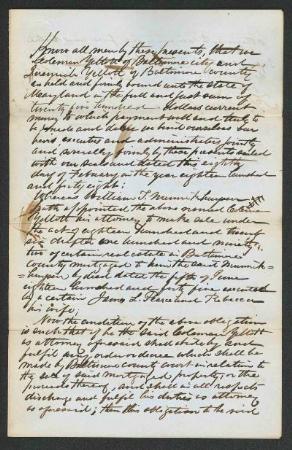 Attorney's bond for the sale of real estate. Baltimore, Maryland. 1848. Clear strike, VF