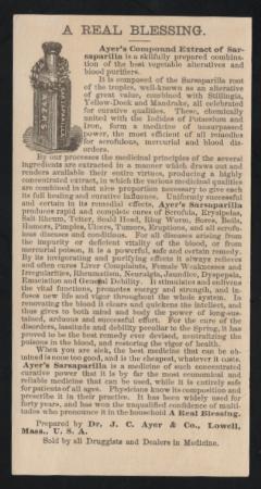J.C. Ayer & Co. (RS2-RS13). Ayer's Sarsaparilla Purifies the Blood trade card