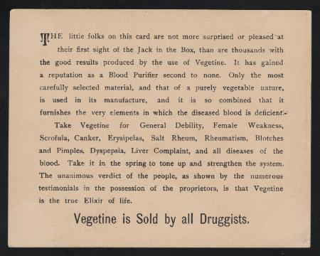 Vegetine The Great Blood Purifier trade card. VF