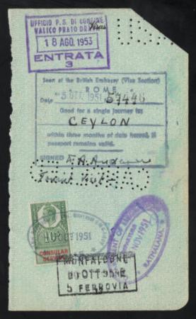 tied on a passport page, British Embassy, Rome, Italy. 1951. VF