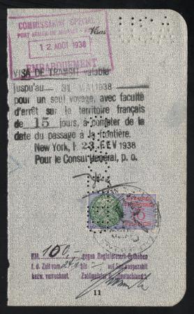 AUSTRIA Visa Revenue on a Passport page. 1938. FRANCE Foreign Affairs 10F on back side. VF