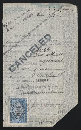 GREECE Consular 81 tied on a passport page. VF